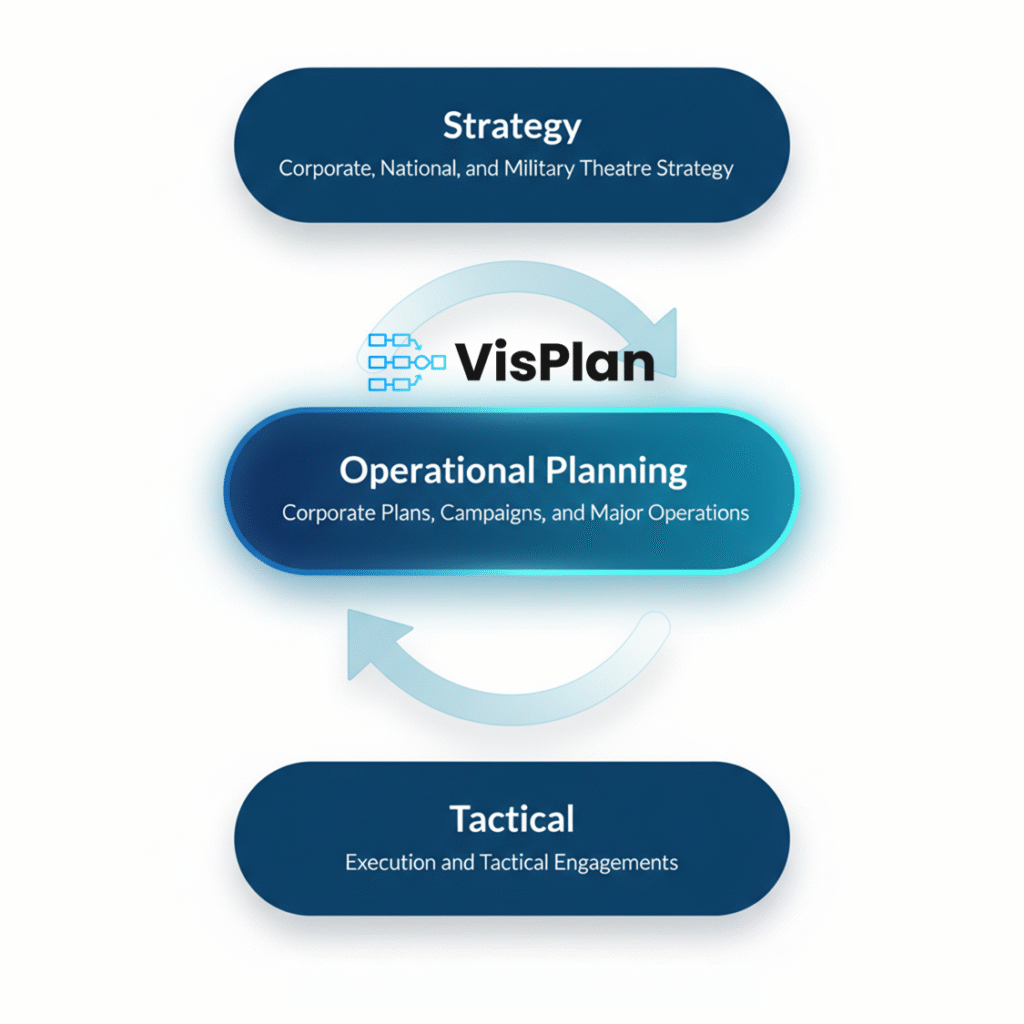 Strategy sets the direction, and tactics handle the daily tasks. Operational planning connects the two, turning big goals into concrete plans. Without it, long-term goals stay disconnected and daily work lacks direction. This is where VisPlan is strongest, making operational plans clear, connected, and intuitive to follow.